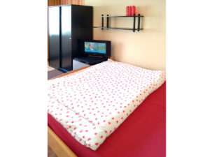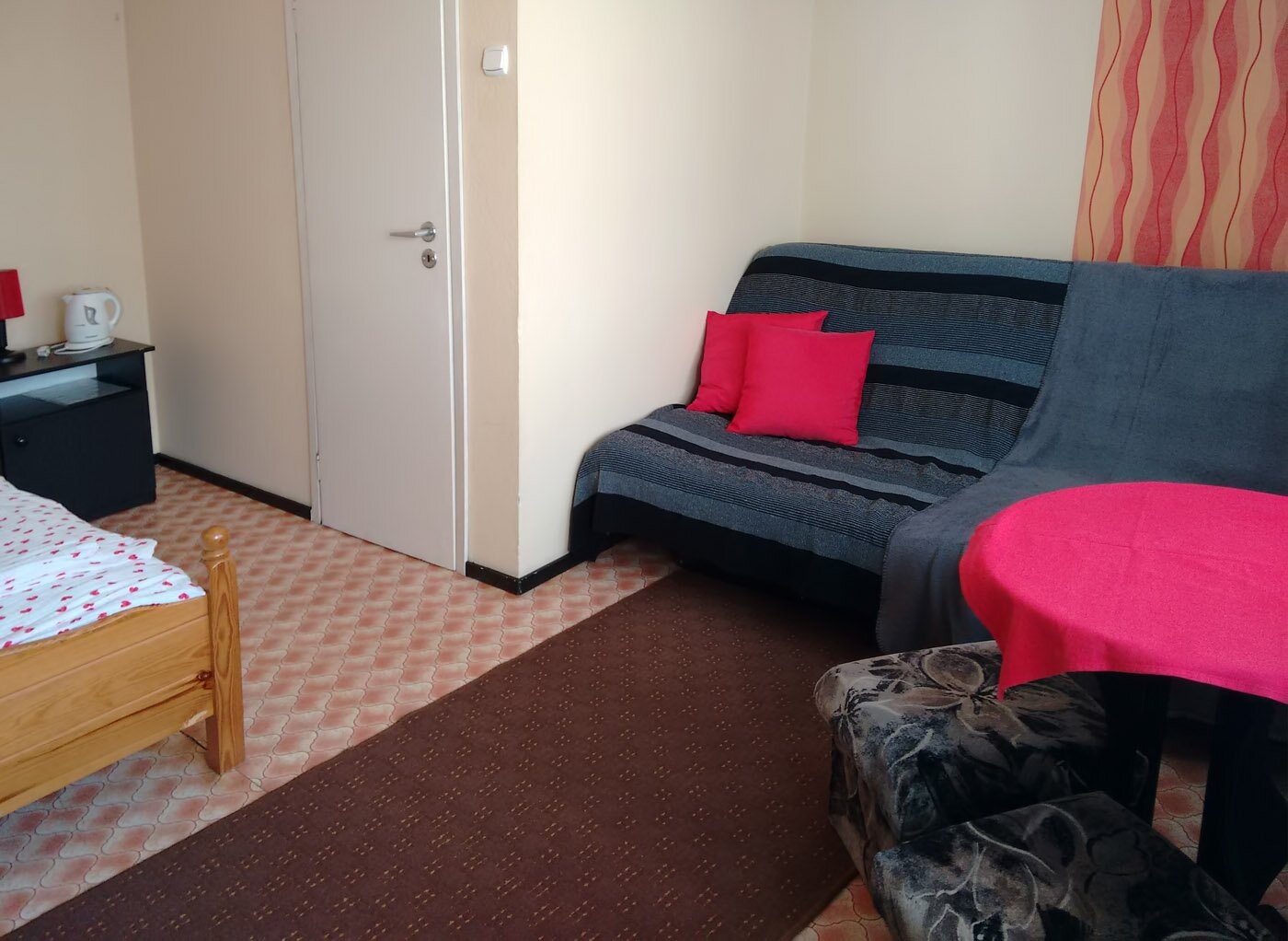 Pokój dla 2-4 osób na 1 piętrze z osobnym wejściem. W pokoju znajduje się łóżko sypialniane małżeńskie o wymiarach 140 x 200 oraz rozkładana sofa dwuosobowa. Pokój posiada własną łazienkę z prysznicem, telewizor z telewizją kablową, czajnik, lodówkę, podstawowe naczynia, koc i parawan.